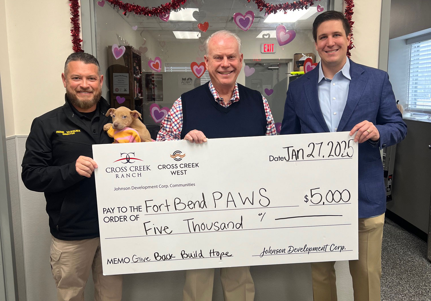 The Johnson Development communities of Cross Creek Ranch and Cross Creek West have gifted $15,000 to three local charities through their annual Give Back, Build Hope campaign.